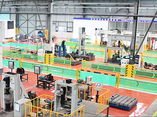 富華重工擁有12個大型生產車間,工廠總占地面積達1,000,000平方米。公司主要生產設備采用世界知名企業(yè)品牌,所有關鍵加工和熱處理和熱處理工藝屬于世界領先水平,主要關鍵零部件橋殼、齒輪、制動器、半軸等都是自制件,有效地保證了產品的質量。